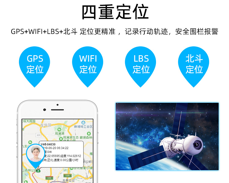 2、GPS+北斗 全球卫星定位,室外精度可达5米