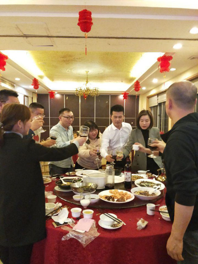 年会第三部分是年夜饭,每位员工都在融洽的氛围里享受着温馨时刻,大家举杯相互祝福。