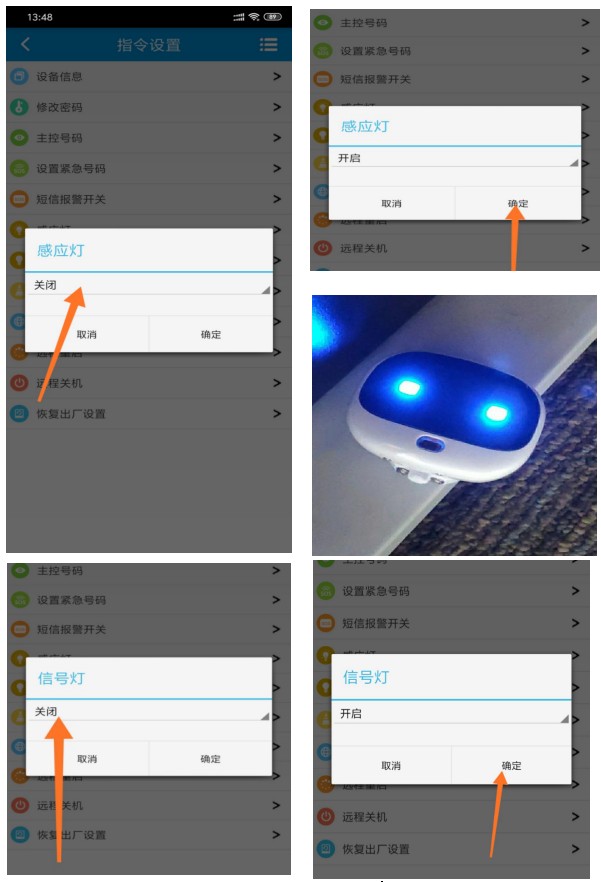 点击指令设置→信号灯→点击图中箭头所指区域→选择开启→确定