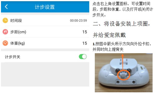按图中箭头所示方向向外拉卡扣,并同时向上提背夹,打开后可看见宠物定位器标签,标签上有ID号。